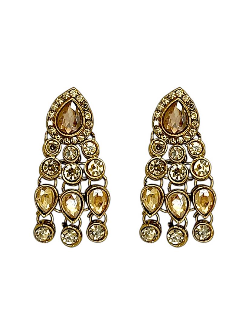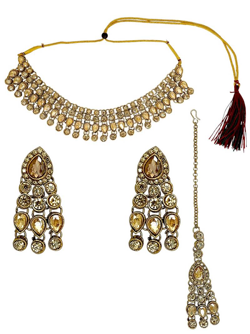 Antique Gold Plated Champagne Stone Necklace Maang Tikka Set